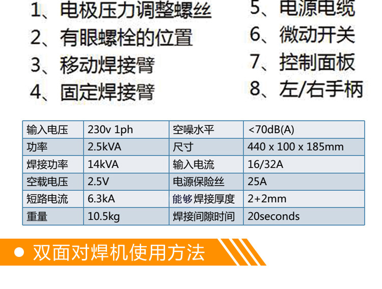 1.用焊接變壓器將220電源變?yōu)榈蛪?、在瞬時高功率的焊接電源,輸出的是低壓大電流,使焊接的工件發(fā)生高溫電阻并加于頂鍛力達到熔接。能夠焊接厚度可達2.0MM+2.0MM