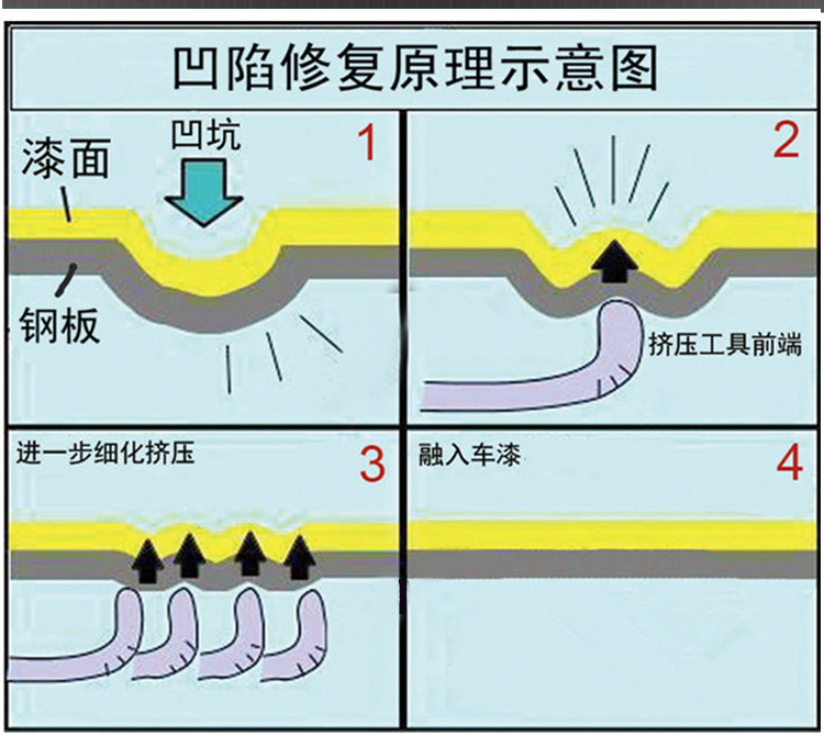 汽車凹陷修復(fù)工具主要的要有圓潤度并且柔韌度大于硬度才能讓修復(fù)輕松自如,才能合理的利用杠桿原理,但是做到這幾點需要專用的生產(chǎn)工藝和特殊的材質(zhì)才能達到滿意的效果,市面的仿制品都是手工研磨,所以 給使用者制造了很大的使用難度或直接沒法正常使用,我公司引進日本先進的冷壓生產(chǎn)工藝,國內(nèi)一家凹陷修復(fù)工具配有專用拉拔器,設(shè)備盡顯細節(jié),能夠達到不錯的修復(fù)效果。